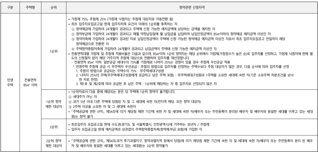 ※ 아래의 1순위 조건을 모두 만족해야 청약이 가능