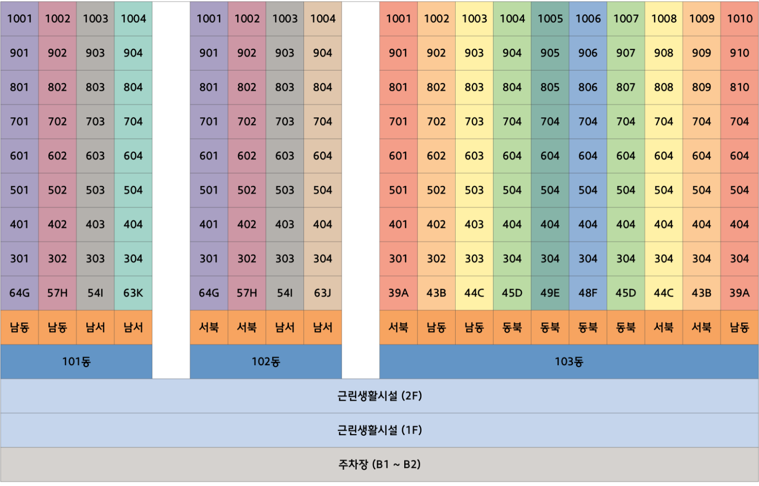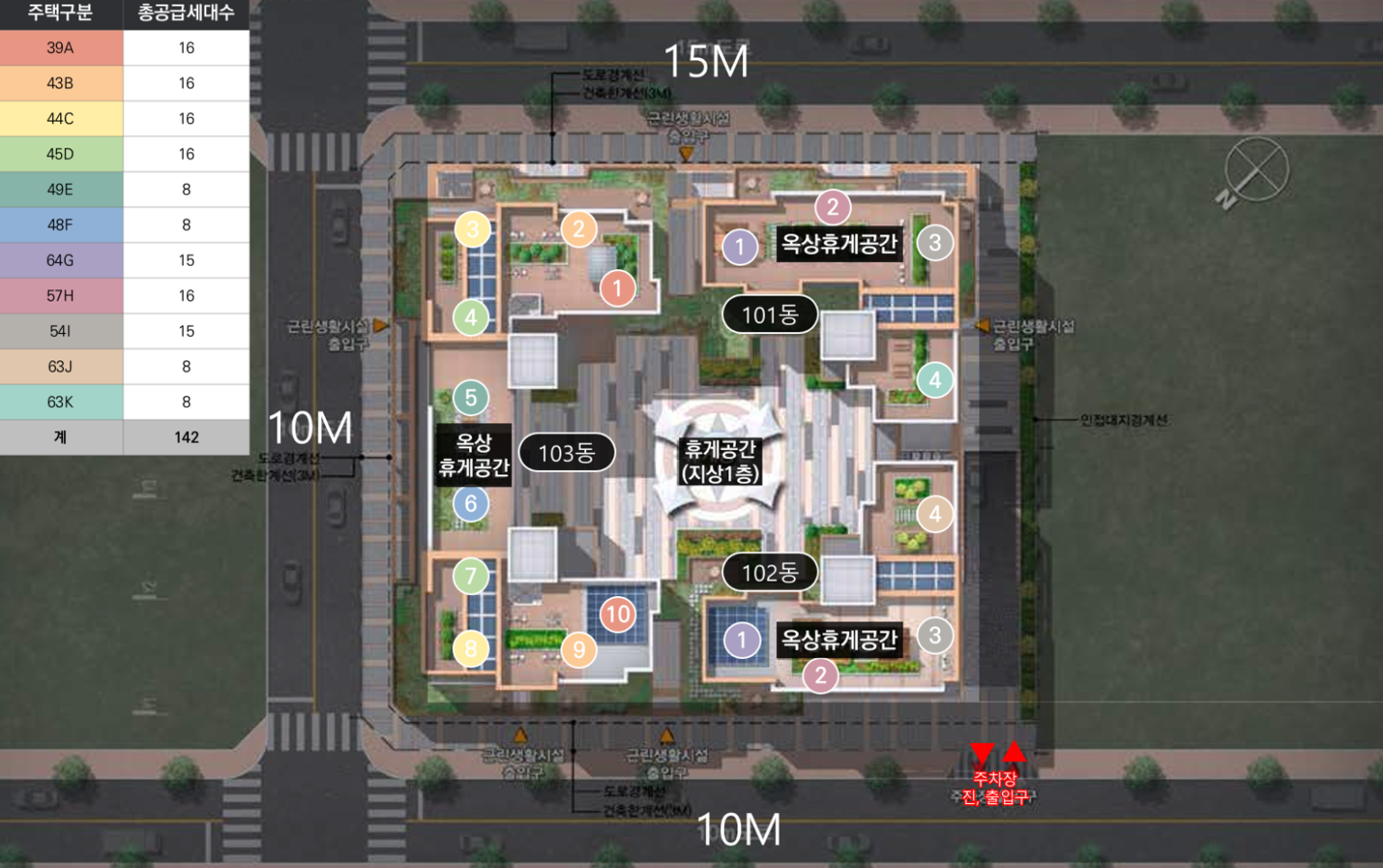 - 총 3개동 위치, 중앙 휴게공간을 둘러싼 형태