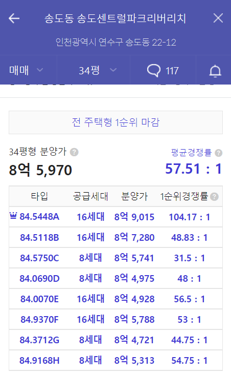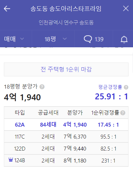 - 송도센트럴파크리버비치(21년 10월 분양), 송도아리스타프라임(21년 5월 분양) : 경쟁률 참고
