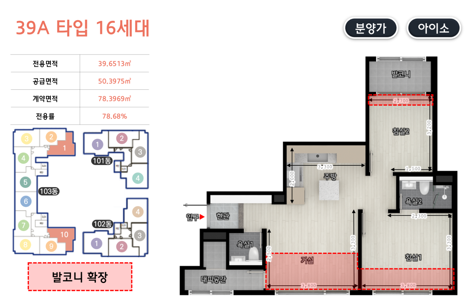 | 전용 39㎡ | 전용 43㎡ |