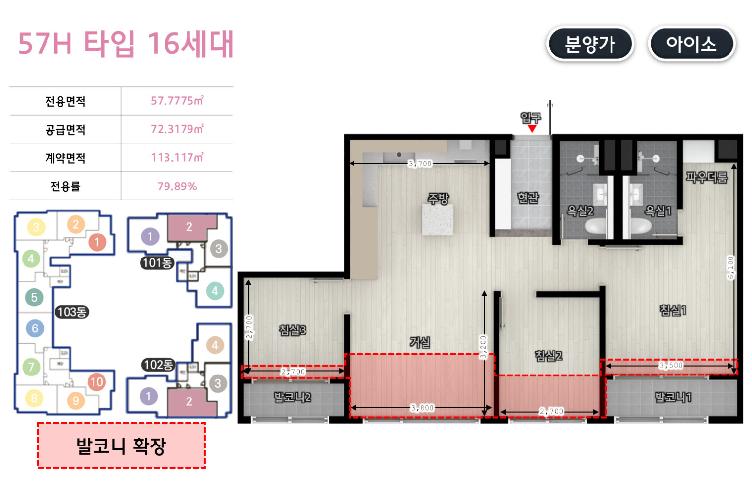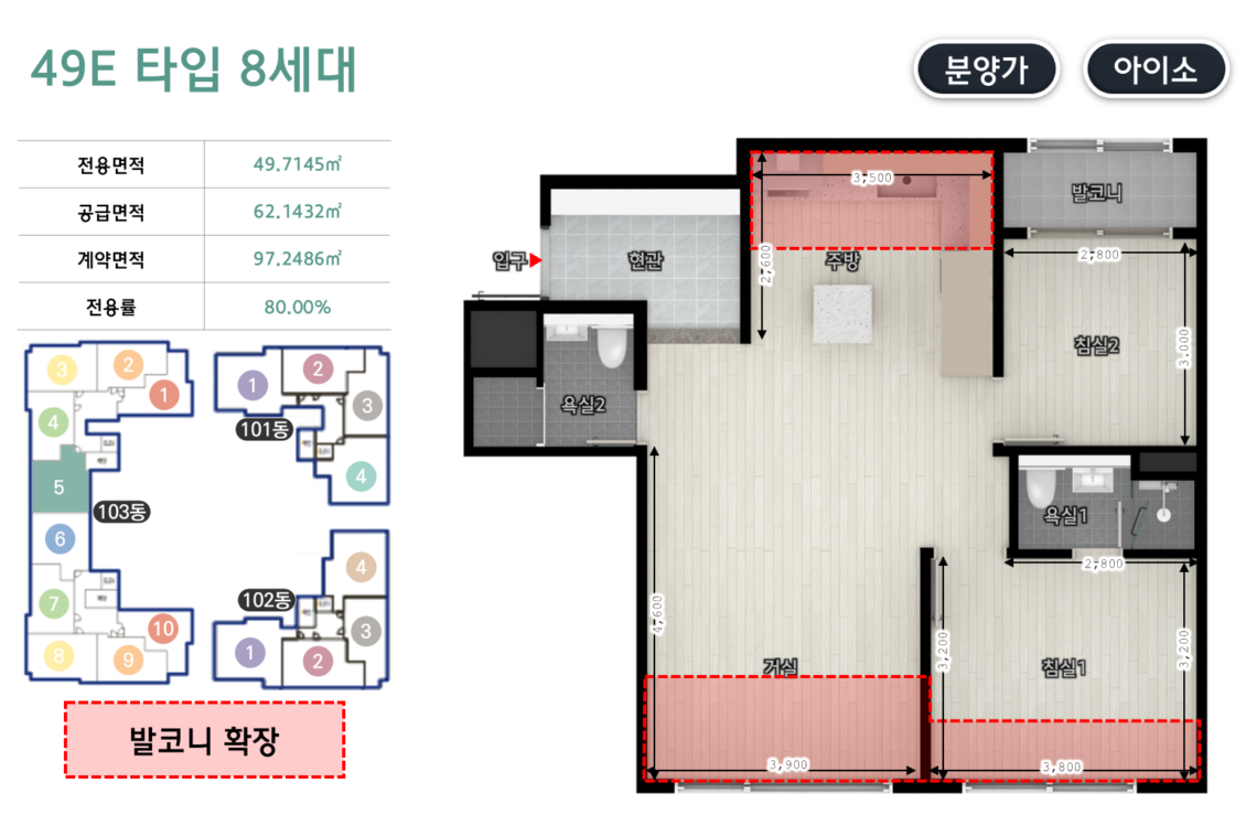 - 발코니 확장비 포함 가격
