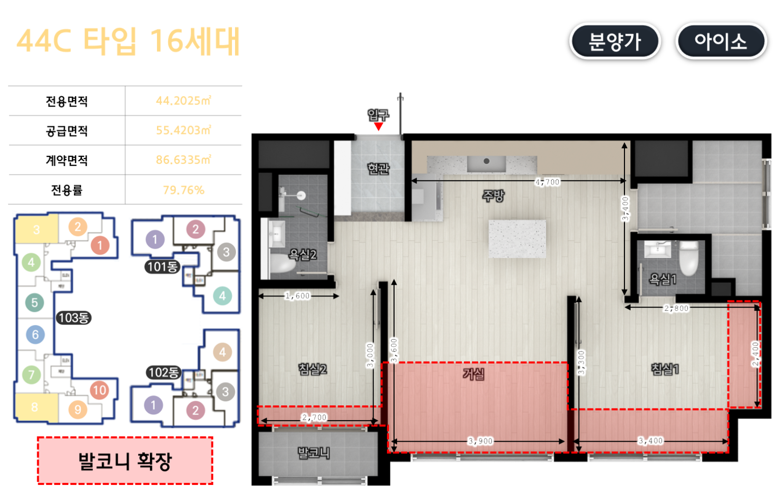 | 전용 44㎡ | 전용 45㎡ |