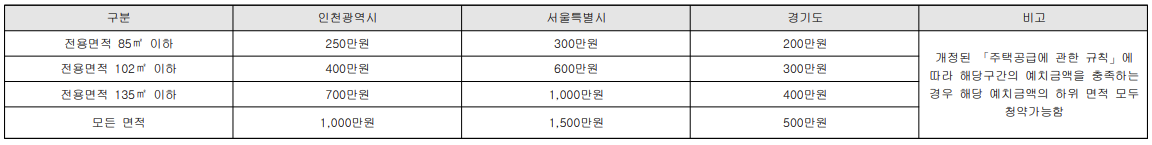 - 청약통장에 가입하여 2년이 지난 자로서 예치기준금액을 납입할 것