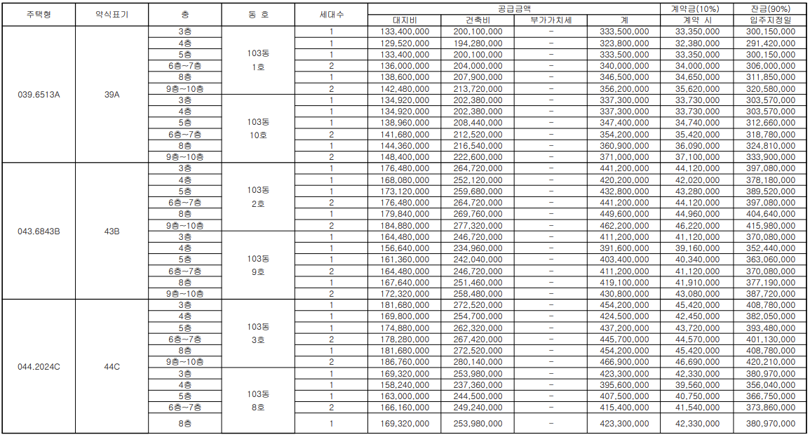 - 주변시세와 견주어 비슷한 분양가 정도