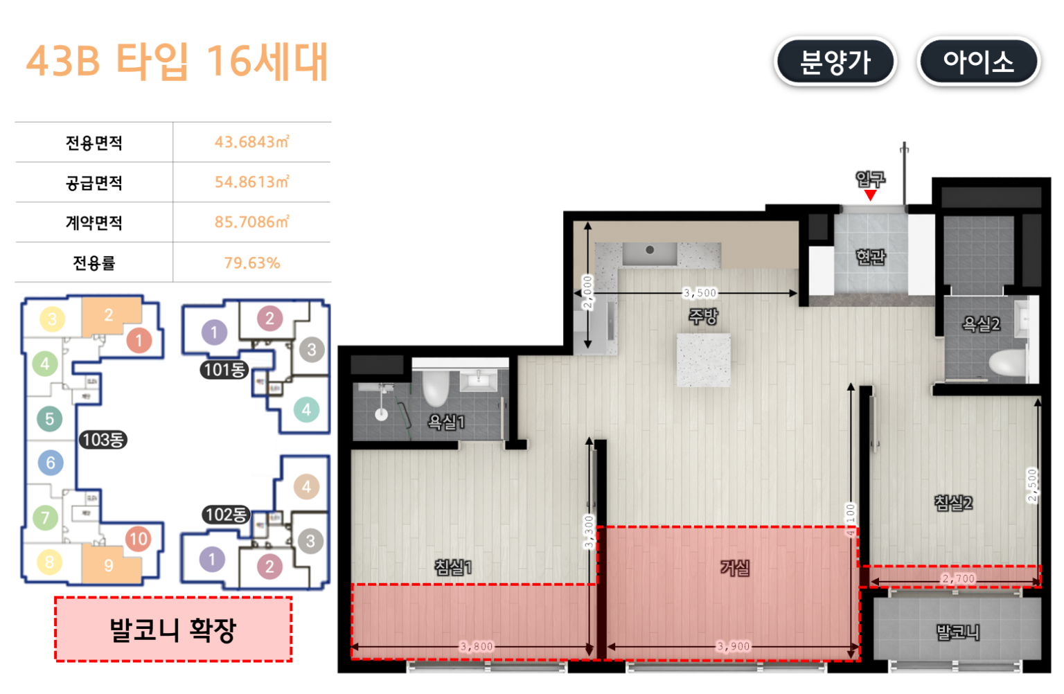 | 전용 39㎡ | 전용 43㎡ |
