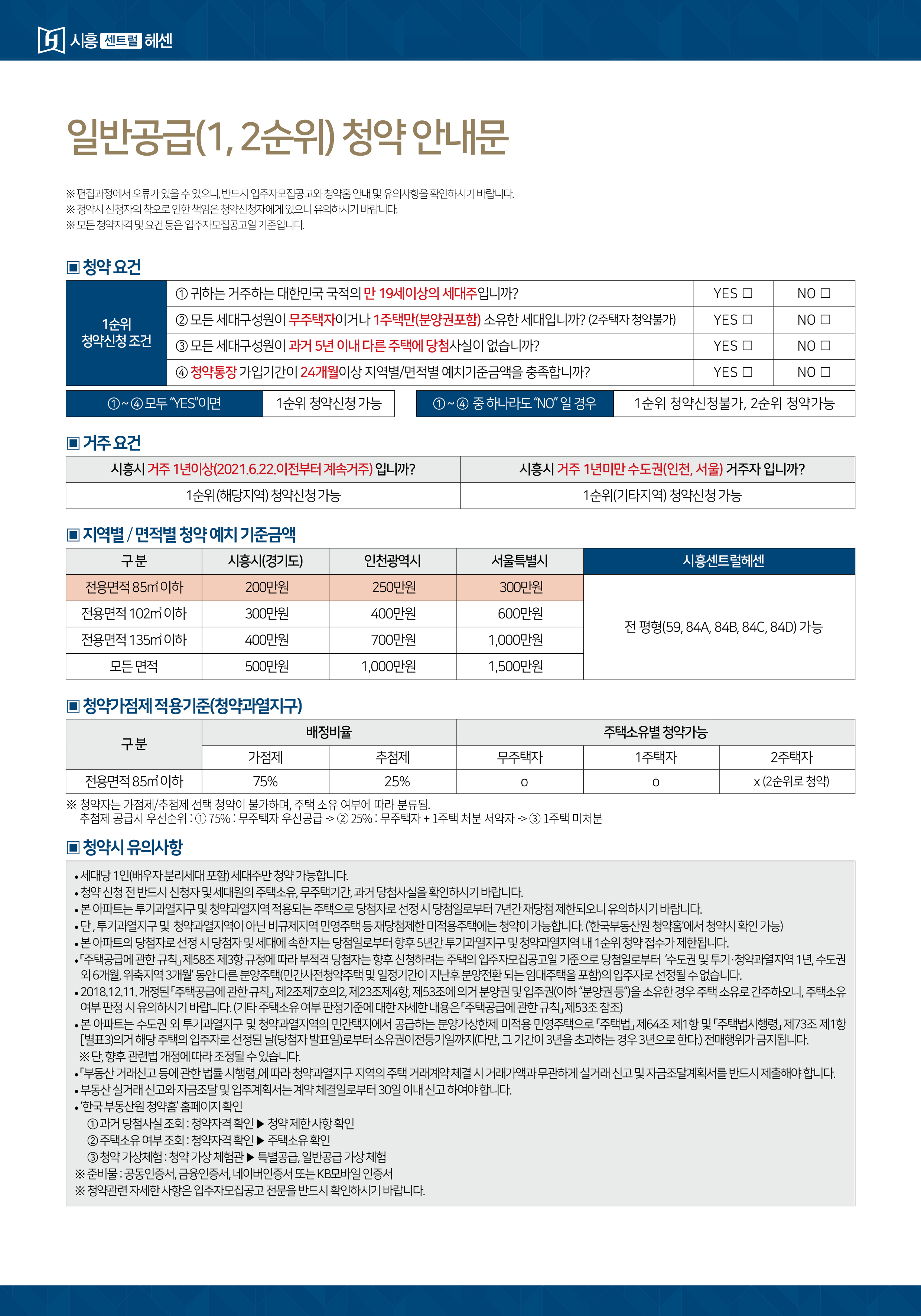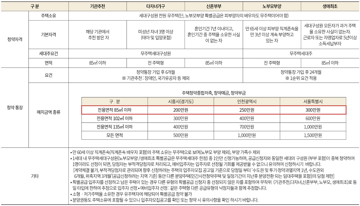 ※ 단, 투기과열지구 및 청약과열지역에서 공급하는 경우 아래의 1순위 조건을 모두 만족해야 청약이 가능