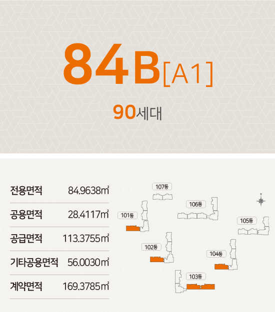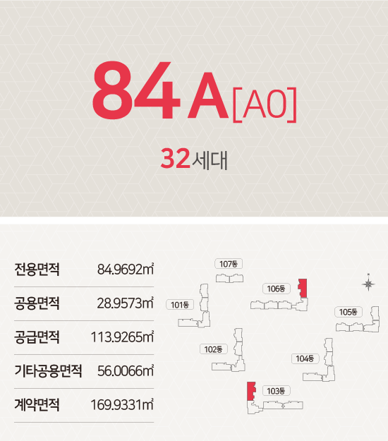 - 전용면적 84㎡ : 거실1, 주방1, 욕실2, 침실3