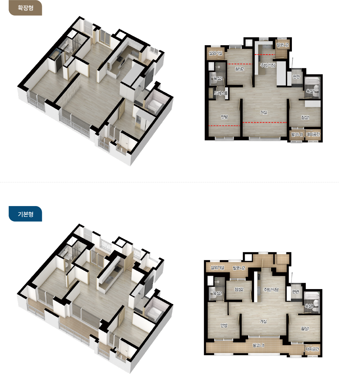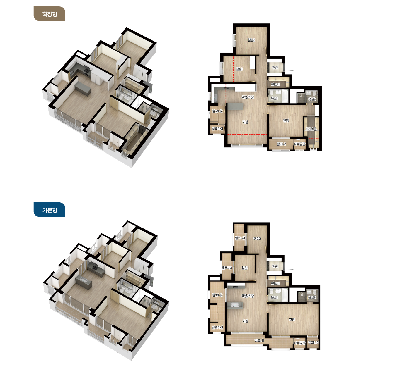 - 확장시 드레스룸 / 거실1, 침실2, 안방 넓어짐