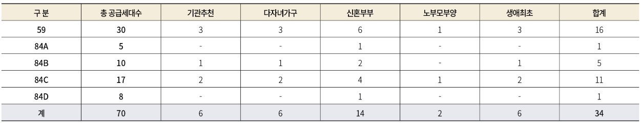 - 특별공급 34세대, 일반공급 36세대, 최하층 우선배정 3세대