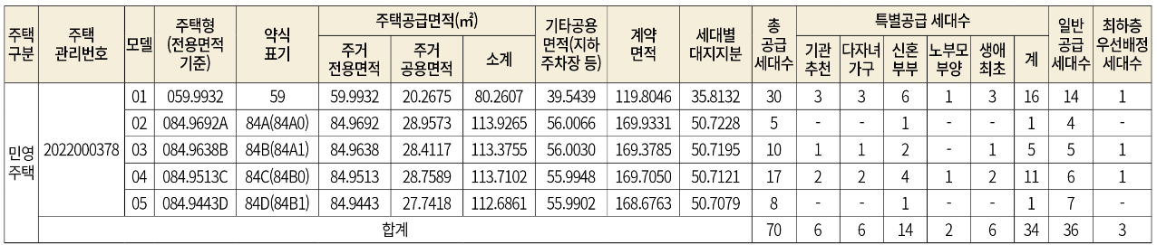 - 특별공급 34세대, 일반공급 36세대, 최하층 우선배정 3세대