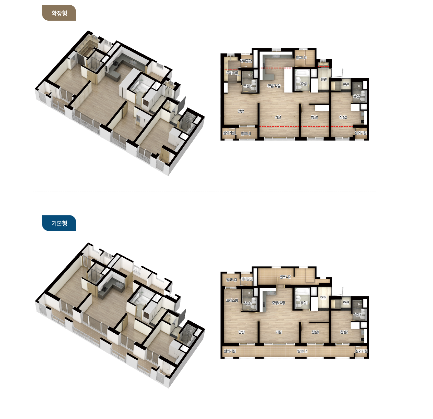 - 전용면적 59㎡ : 거실1, 주방1, 욕실2, 침실3