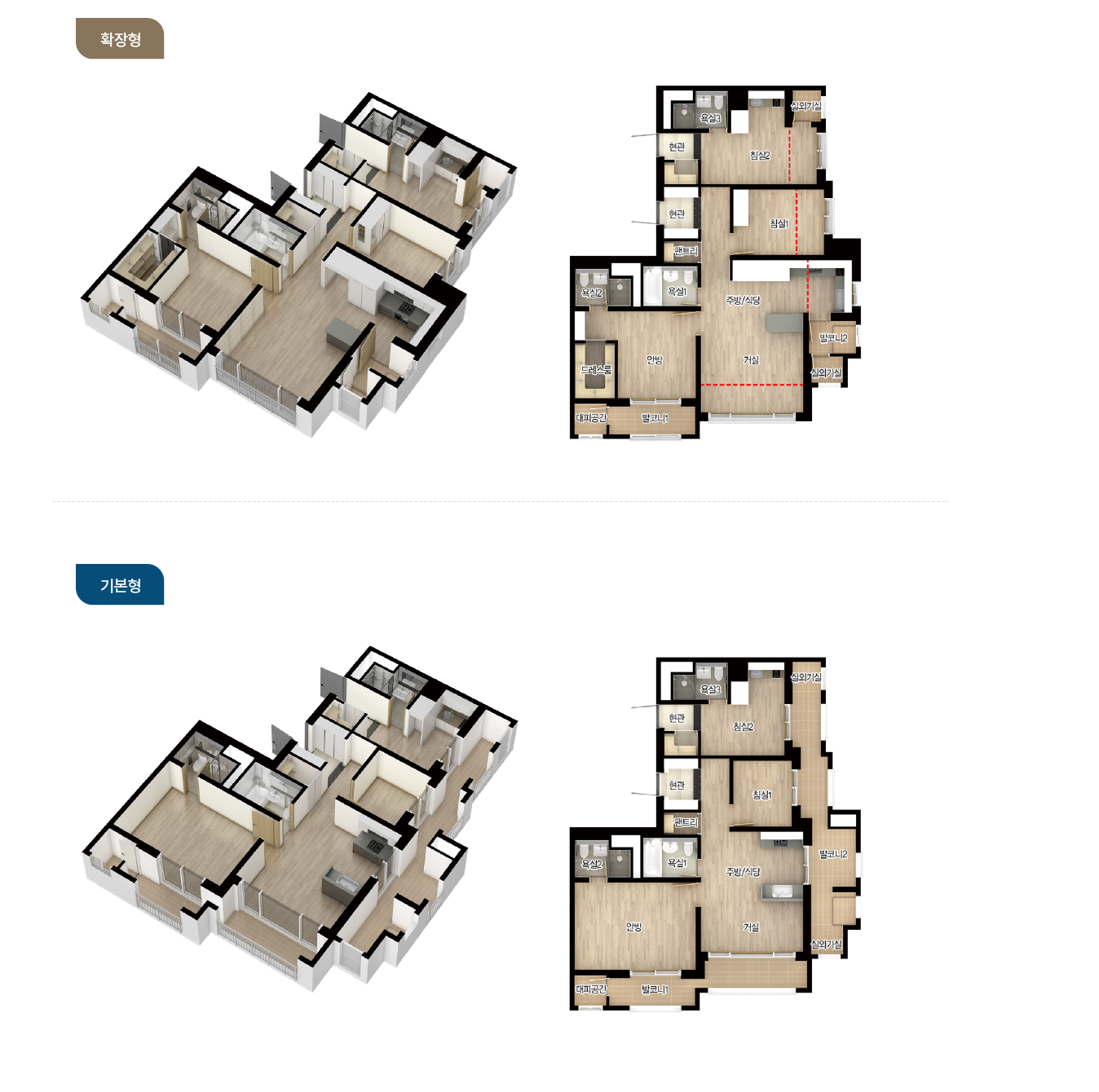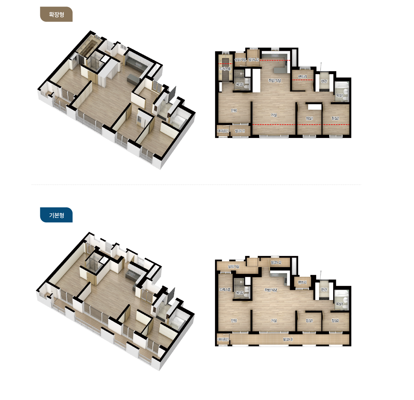 - 확장시 드레스룸 / 거실1, 침실2, 안방 넓어짐