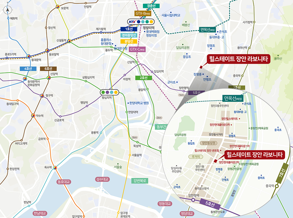 - 편의시설 : 롯데백화점 청량리점, 장안동 먹자골목, 홈플러스 동대문점 등