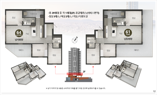 - 세대수 : 총 29세대 (61㎡ 7세대, 64㎡A 7세대, 64㎡B 7세대, 67㎡ 7세대, 83㎡ 1세대)
