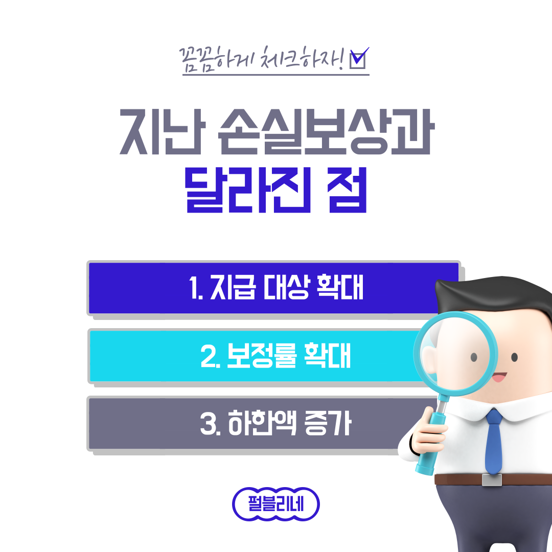 • 확인 보상 : 신속보상 결과에 동의하지 않는 경우, 유형별 증빙서류를 제출하여 보상금을 재산정・심의