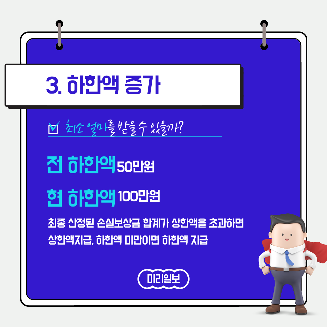 • 최종 산정된 손실보상금 합계가 상한액을 초과하면 상한액지급, 하한액 미만이면 하한액 지급