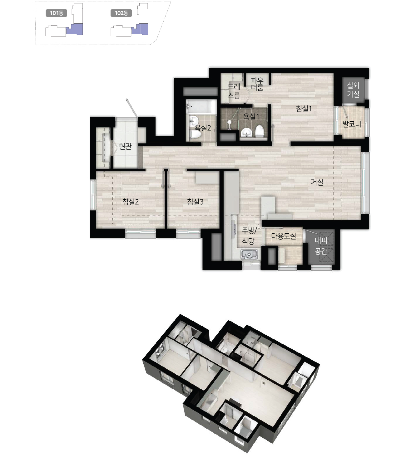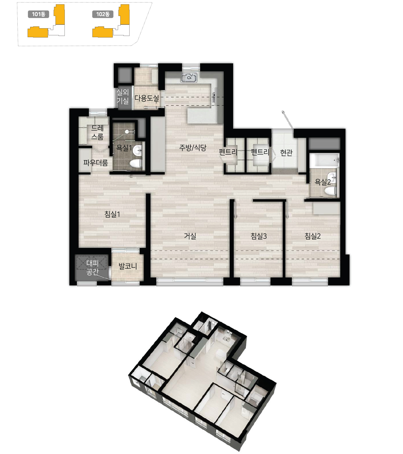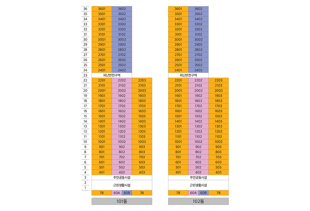 - 전용 60.42㎡ : 거실1, 주방1, 방3, 욕실2