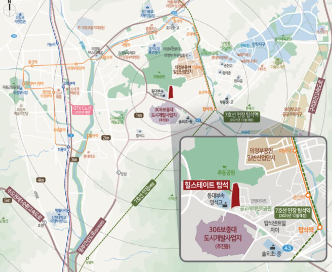 - 지하철 : 7호선 연장 탑석역(2025년 개통 예정), GTX-C노선(2027년 개통 예정)