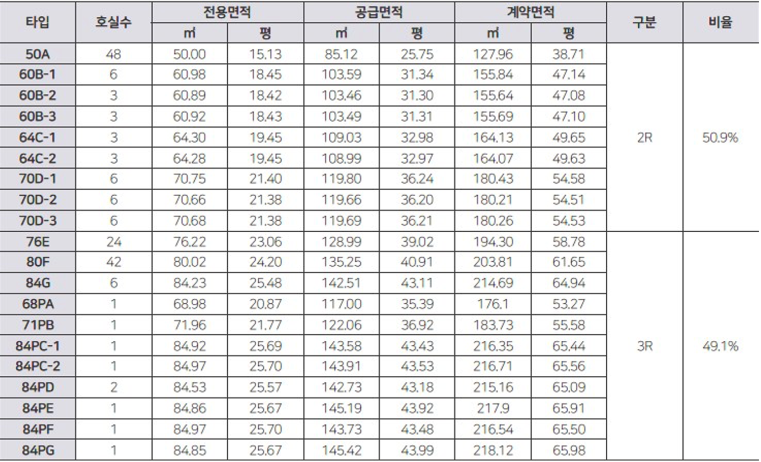 - 주택형 : 50㎡ ~ 84㎡ (총 21개 타입)