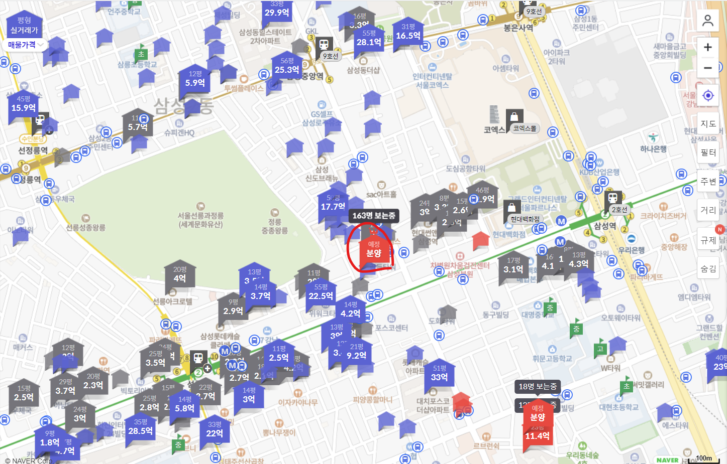 - 편의시설 : 스타필드 코엑스몰, 현대백화점 무역센터점, 이마트 역삼점, 서울의료원 강남분원, 강남 세브란스 병원 등