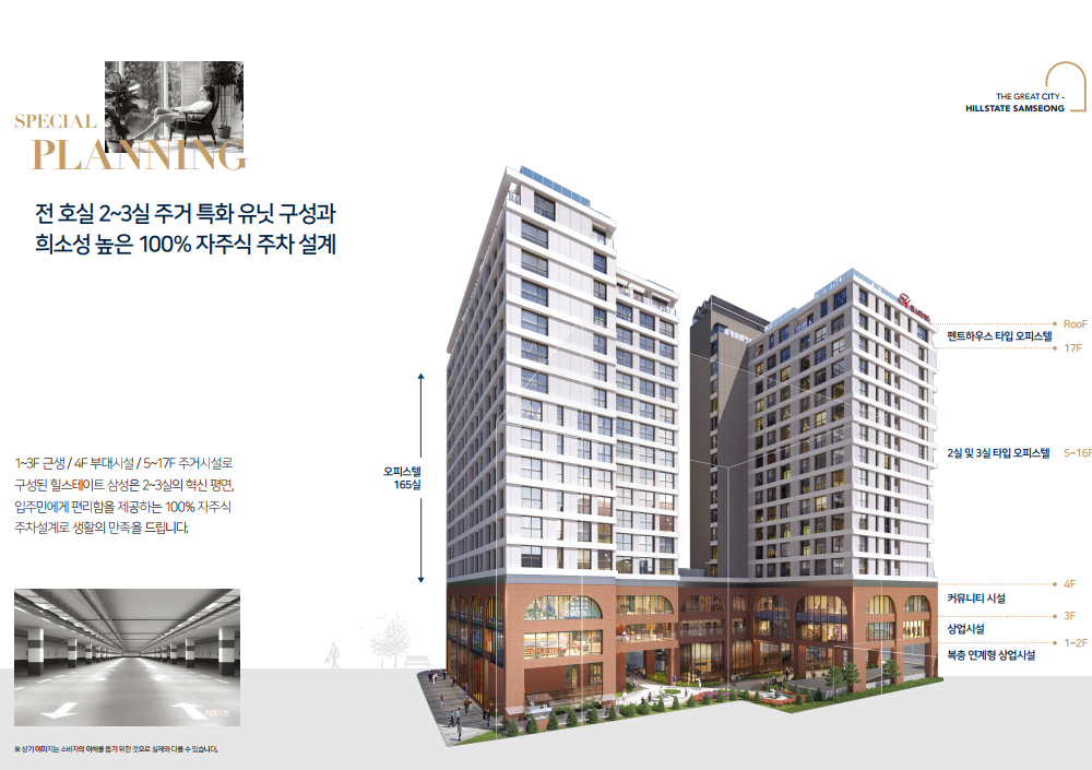 - 주차대수 : 총 189대 (오피스텔 182대, 근린생활시설 7대)