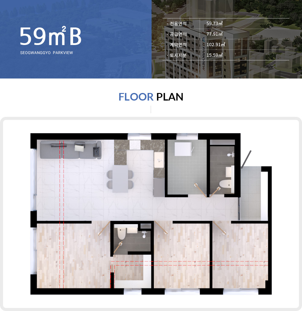 - 주차계획 : 오피스텔(1대/세대당) 9대, 아파트(1대/세대당) 72대 총 81대