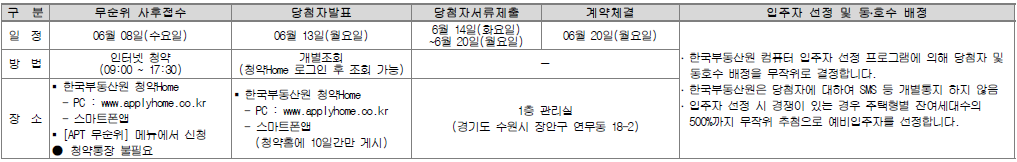 - 청약통장 가입여부와 무관하게 신청가능하며, 청약신청금은 없음 (본인 및 세대원 중 본 주택의 당첨자 발표일 현재 재당첨제한 기간 내에 있는 경우 청약신청이 불가, 본 주택에당첨되는 경우 재당첨 제한 적용 받으며, 부적격 당첨자로 판명시 향후 청약하려는 지역에 따라 최대 1년간 청약신청 등 제한을 적용받음)