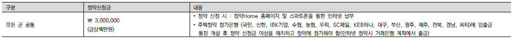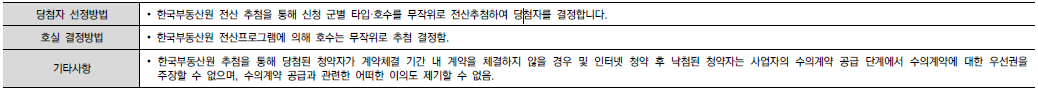 - 거주지역 및 청약통장 가입여부와 무관하게 청약신청이 가능하며, 당첨되더라도 당첨자 관리, 재당첨 제한 등은 적용되지 않음