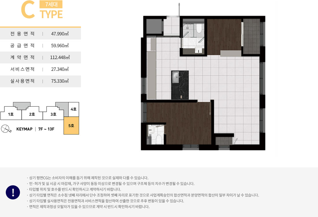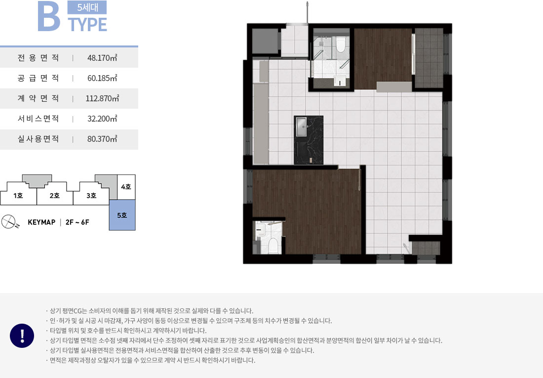 - 전용 49㎡ : 거실1, 주방1, 욕실2, 침실2