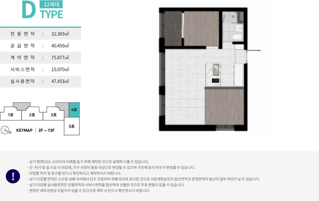 - 전용 32㎡ : 거실1, 주방1, 욕실1, 침실2