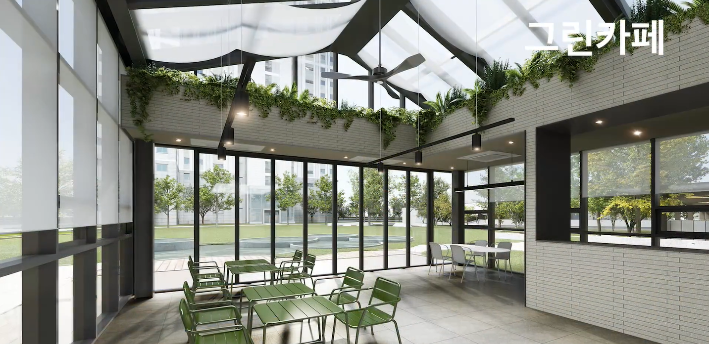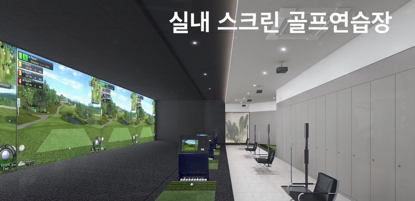 - 내부 커뮤니티 시설 : 스크린골프, 피트니스, 게스트하우스, 어린이집, 키즈스테이션, 그린카페, 라운지카페 등