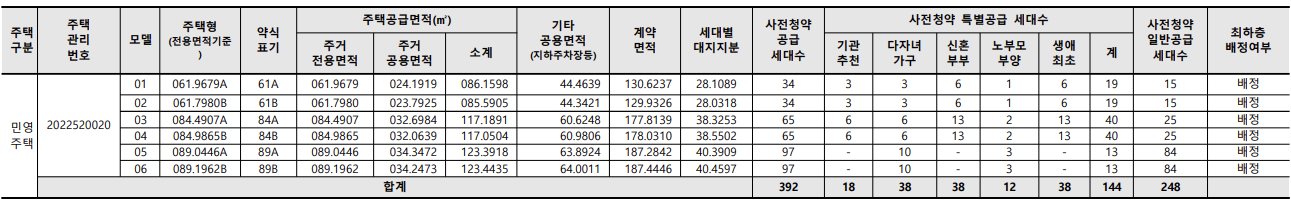 458 | 지하3층-지상42층 | 3동 | 392 | 144 | 248 | 61AB, 62B, 84AB |