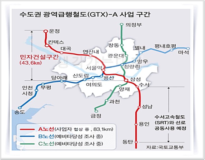 - GTX-A노선 : GTX운정역~서울역 20분대, GTX운정역~삼성역 30분대