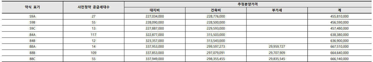 - 본 아파트는 공공택지를 공급받아 민간에서 사전청약 방식으로 사전당첨자를 선정하는 ‘민간 사전청약’ 아파트로 민간 사전 당첨자 모집공고문에 명시된 추정분양가격, 본 청약시기 및 입주 예정일 등은 본 청약 시 변경될 수 있습니다.