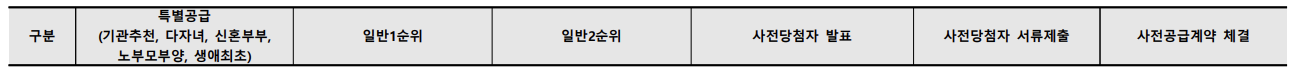 - 「주택공급에 관한 규칙」제36조에 의거하여 관계기관의 장이 정하는 우선순위에 따라 공급합니다.
