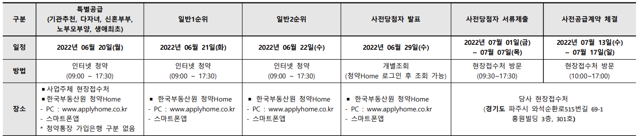- 청약기간 : 2022년 6월 20일 ~ 2022년 6월 22일