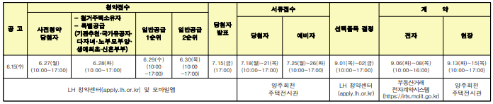 - '22.6.28(화) : 기관추천(철거주택소유자, 국가유공자 포함), 다자녀, 노부모부양, 생애최초, 신혼부부 특별공급