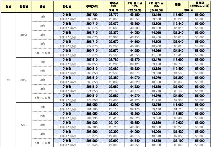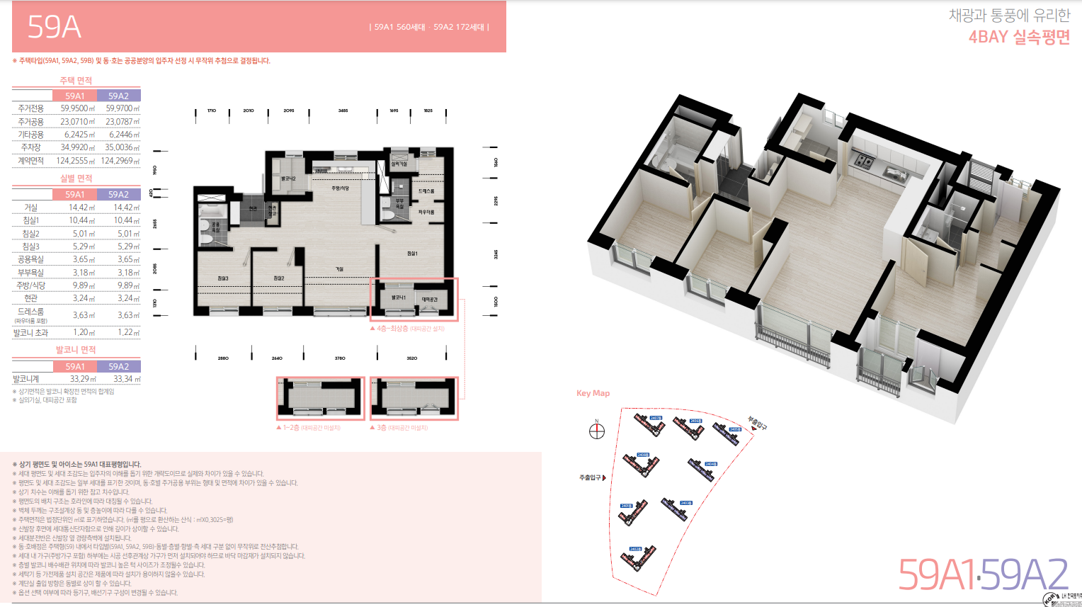 - 59㎡A : 거실1, 주방1, 침실3, 욕실2